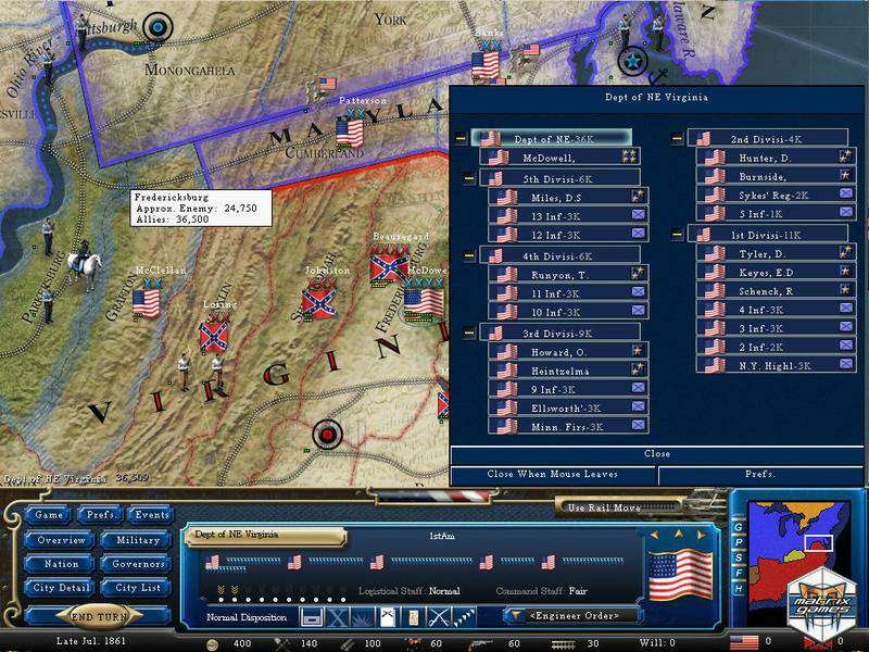 Геймплей содержит в себе множество нюансов. При желании их позволяют отключать или включать. Европа может вмешиваться в военный конфликт на территории Америки. Игрокам позволяют лично назначать генералов и заниматься снабжением. Проект разрешает геймерам гибко настраивать сложность под себя. Графика в тайтле двухмерная и максимально схематичная.