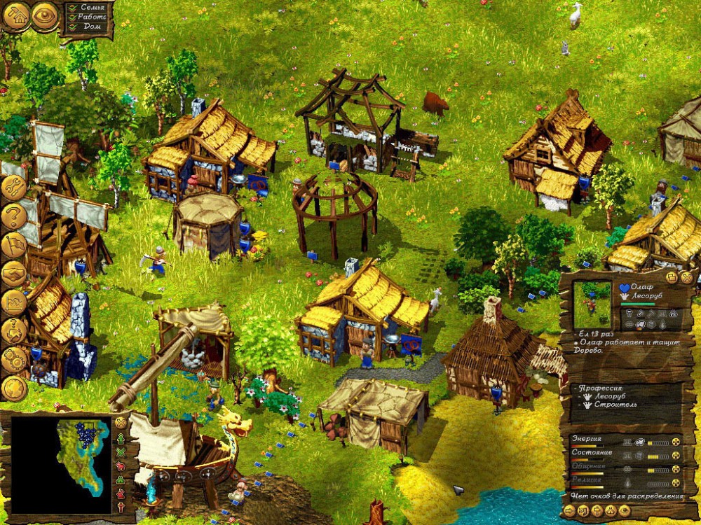 Рост населения зависит от количества заключенных браков. Пользователю разрешают женить мужчин и женщин, а затем выбирать пол будущего ребенка. К слову, детей тут приносит аист. Процесс их взросления проходит довольно быстро. Человечки накапливают опыт, повышают ранги и получают доступ к новым профессиям. Они могут становиться лесниками, строителями, друидами, грибниками, разведчиками, охотниками, рыбаками, фермерами, столярами, пекарями и другими специалистами. Каждый житель нуждается в пище, отдыхе, семье, религии и общении. На эти параметры влияет множество факторов. Например: уставший после работы викинг быстрее восстановит силы, если поспит на удобной кровати, и будет медленнее уставать, если начнет носить обувь. Удовлетворять потребности людей необходимо, иначе они откажутся трудиться или погибнут. Следить за желаниями своих подопечных позволяют специальные индикаторы.