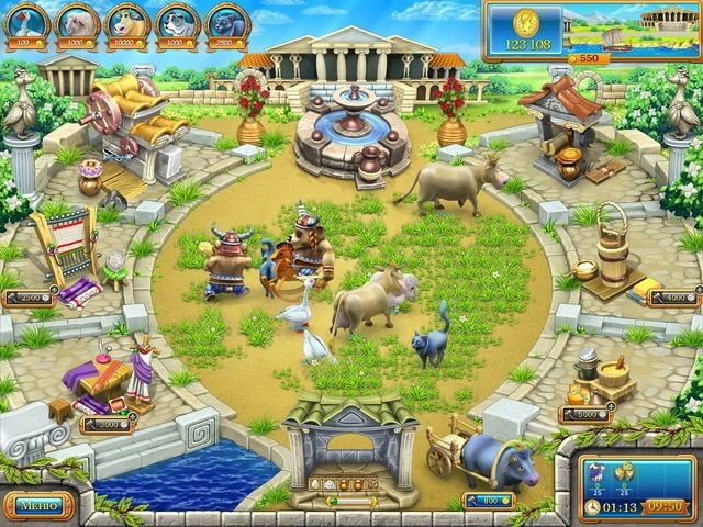 Суть игрового процесса осталась такой же. Надо разводить животных, перерабатывать все, что они производят, открывать новые рецепты, расширять ассортимент товаров и продавать их. Всего тут 90 уровней, что открываются постепенно. Лимита времени нет. Можно спокойно развлекаться в свое удовольствие. Но если справиться с задачей очень быстро, то за прохождение этапа дадут больше звезд и наградят золотым кубком. Звездочки нужны для покупки апгрейдов. Появились дополнительные материалы. Например: цемент и доски. Их надо покупать отдельно за золото и ждать доставки. Есть небольшая сюжетная завязка про девушку Скарлетт, что обеспечивает римскую армию продовольствием.