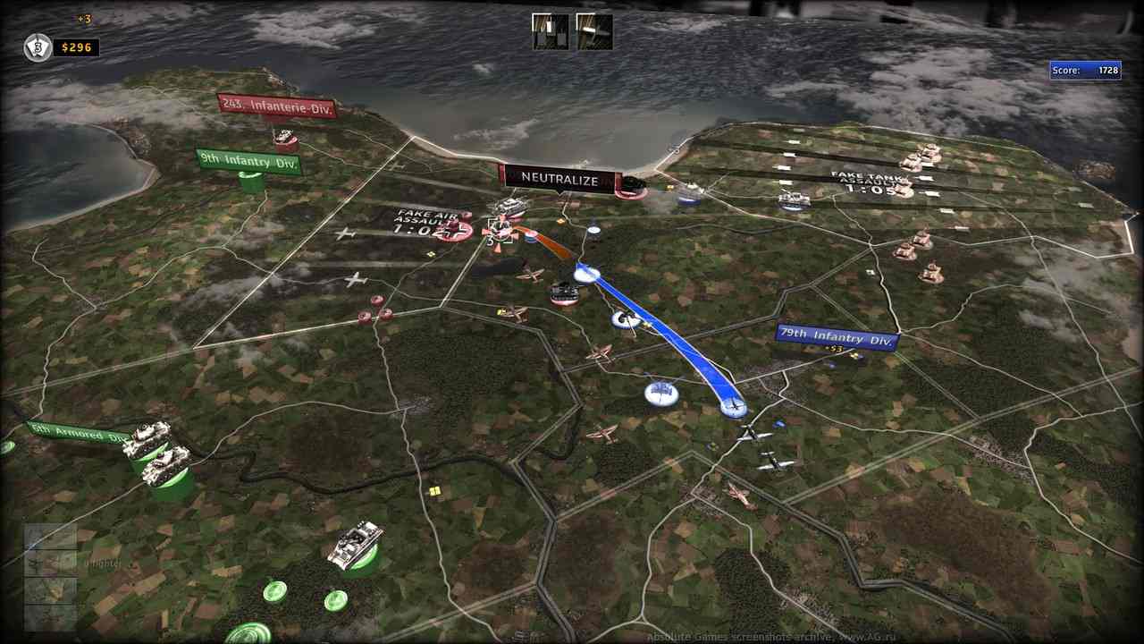 Вся карта разделена на отдельные секции, где можно попробовать интересную функцию «уловок». Таким образом можно поставить гаджет, которые перехватывает сигнал противника, или создать искусственную армию вертолетов и танков из картона. Сымитировав наступление, можно запросто обойти фланг с другой стороны и уже по-настоящему напасть на врага.