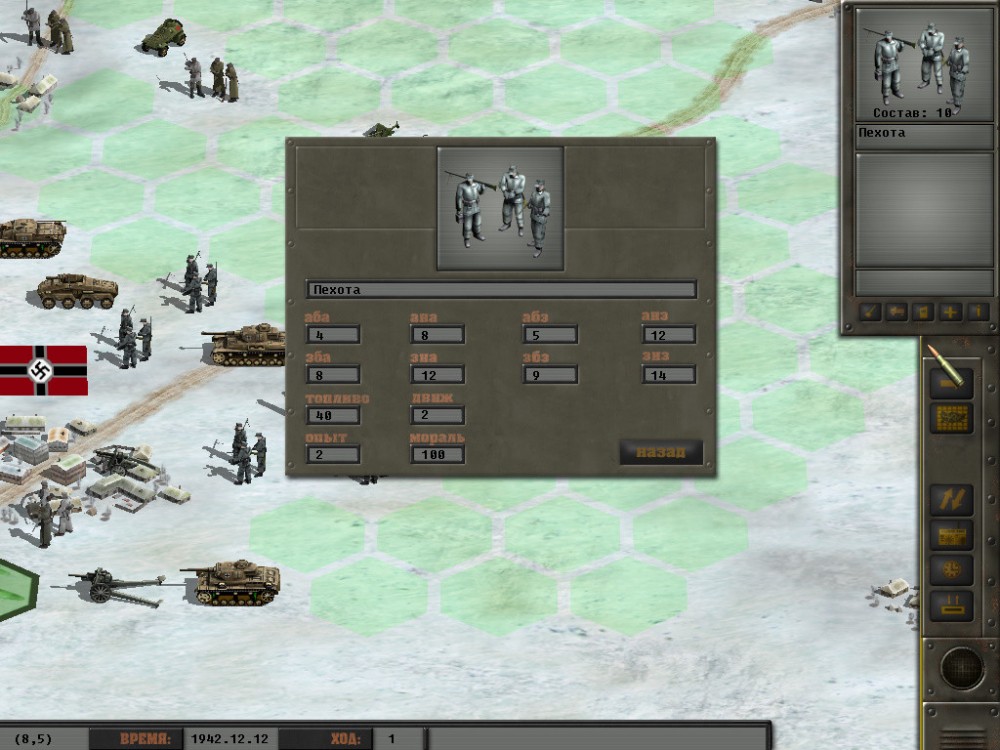 Русский фронт 2 - стратегическая игра, выступающая прямым сиквелом одноименной TBS. Продолжение выделяется более детализированной графикой и рядом геймплейных нововведений. В настройках теперь можно установить возможность быстрого перемещения техники, что позволит игровому процессу в разы повысить динамику сражений.
