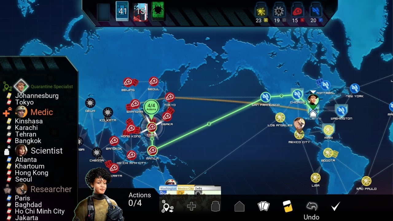 Всего имеется 7 ролей, они взаимосвязаны, а их совместно использованные способности быстрее справляются с нависшей трудностью. Наблюдайте за статистикой и картой всего мира: как распространяются болезни, какие города преодолевают проблему, а где нужна дополнительная поддержка. Из всех ролей вы выберите только несколько из них. Выбирайте из 5 уровней сложности, соответствующих вашим навыкам.