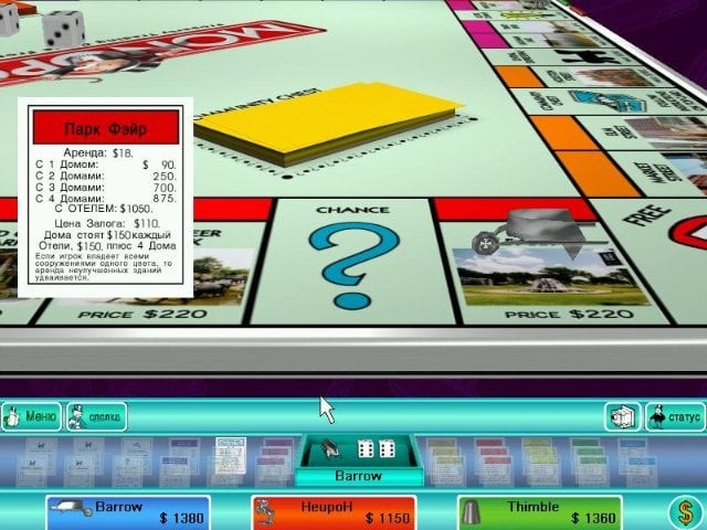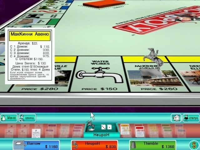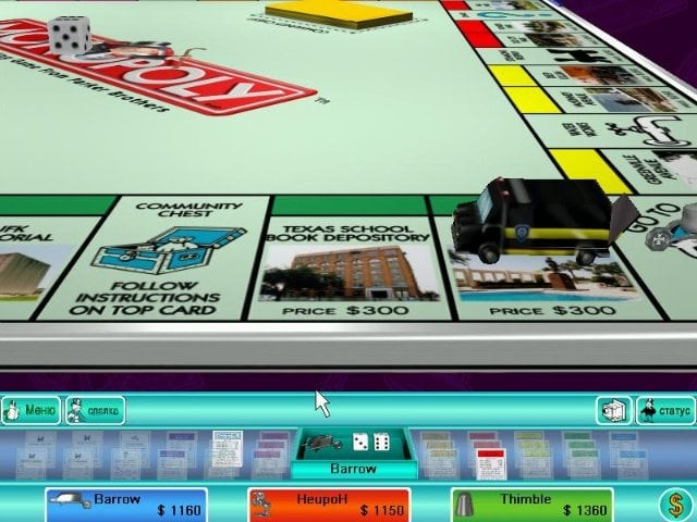 Монополия 3, как понятно из названия, является третьей по счету видеоигровой адаптацией популярной настолки. Проект позволяет играть вместе 2-6 людям за одним компьютером. Возможность устроить партию в онлайне тоже присутствует. Также можно соревноваться в одиночку, выбрав на роль соперников ботов.
