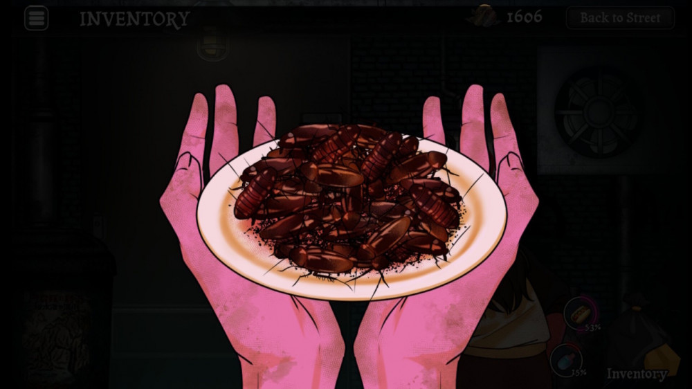 Геймплей простой до боли. Сначала идёшь на улицу, попрошайничаешь. Прохожие разные попадаются: кто-то монетку кинет, кто-то обругает, а некоторые вообще что-то нечеловеческое прошепчут (жутковато, честно). Собрал деньги, идёшь к автомату, покупаешь случайную вещь. И тут начинается рулетка. Может, попадётся что-то съедобное и утолит голод. А может, съешь, и у тебя начнутся необратимые изменения в организме. Или вообще потеряешь способность говорить, например.