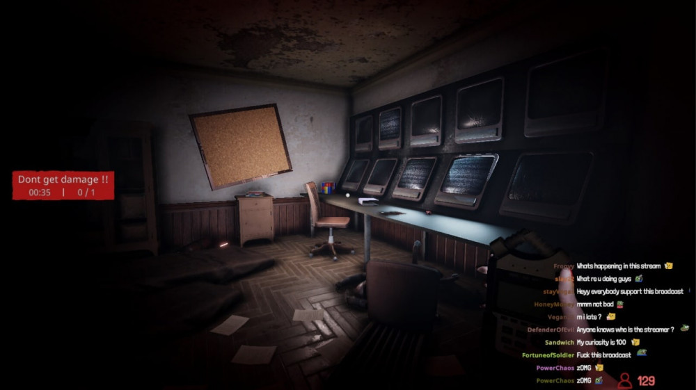 Во время изучения карты, юзеры посетят больничные палаты и коридоры мрачной и заброшенной психлечебницы. Предстоит использовать доступное оборудование и снаряжение (камеры, фонарики, ножи, сковородки и т.п.) для обороны и исследования местности. Также получится убегать и прятаться от врага, дожидаясь его ухода. Главными героями становятся: Эмили (инфлюенсер), Джордж (бодибилдер), Дэйв (технолог) и Роберто (геймер). Каждый персонаж обладает своими способностями и особым внешним видом. В процессе прохождения, протагонисты будут выступать в роли стримеров, что получают возможность контактировать со своей аудиторией и другими участниками, чтобы получать подсказки. При кооперативной игре, для юзеров доступен специальный локальный чат.
