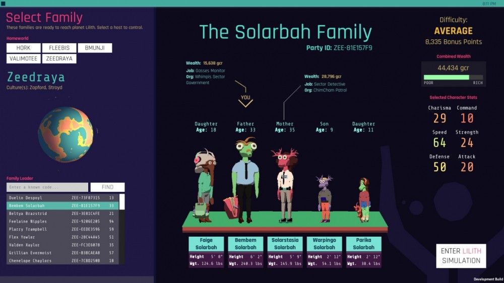 Что касается планет, то каждая из них имеет уникальный климат, биомы и содержит непохожих друг на друга существ. Некоторые из них окажутся совершенно безобидными, а другие могут начать атаковать членов семьи как только те попадут в поле зрения. Это опасно, ведь на начальных этапах у геймера может не оказаться подходящих средств для того, чтобы дать отпор. Кроме того, в зависимости от уровня сложности, масштаб опасности будет только возрастать. Но все не так плохо, ведь со временем команда сможет обзавестись ресурсами, и тот же корабль будет оснащен щитами, пушками и прочими полезными гаджетами.